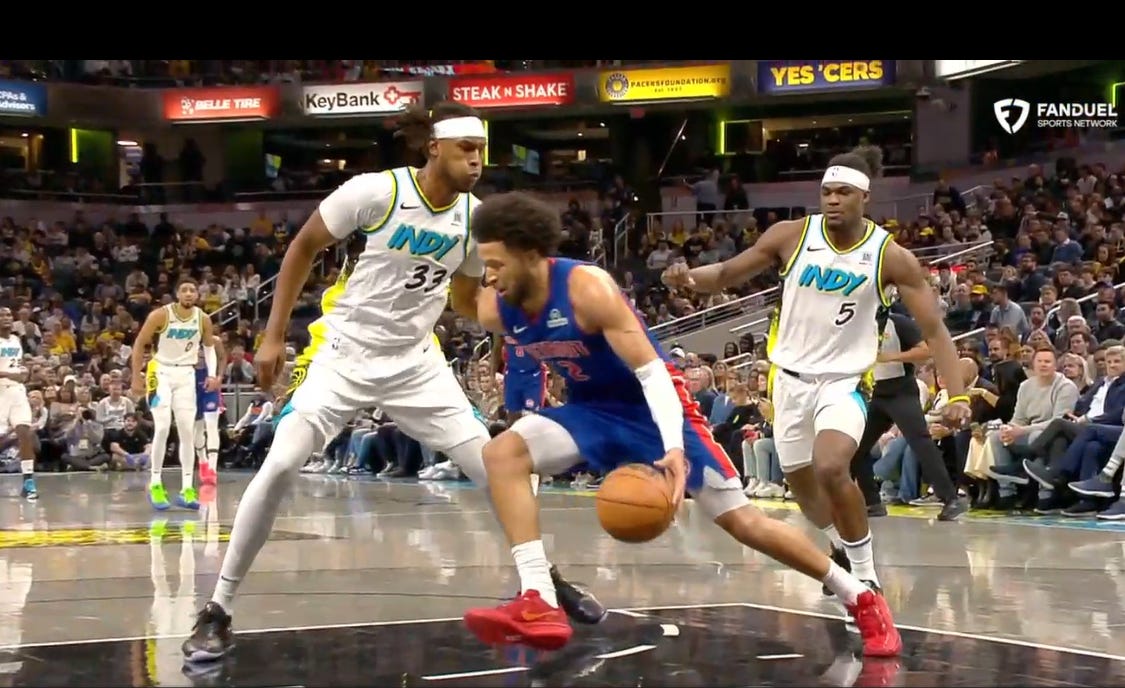 Cunningham also had four turnovers and for a couple of different stretches did not bring the ball up, to save some energy for the half court. The pressure was highlighted early in the game by Walker and then Myles Turner teaming up to turn and then stymie Cunningham and earning an 8-second backcourt violation and setting the tone for how the Pacers would attack the Pistons all night.